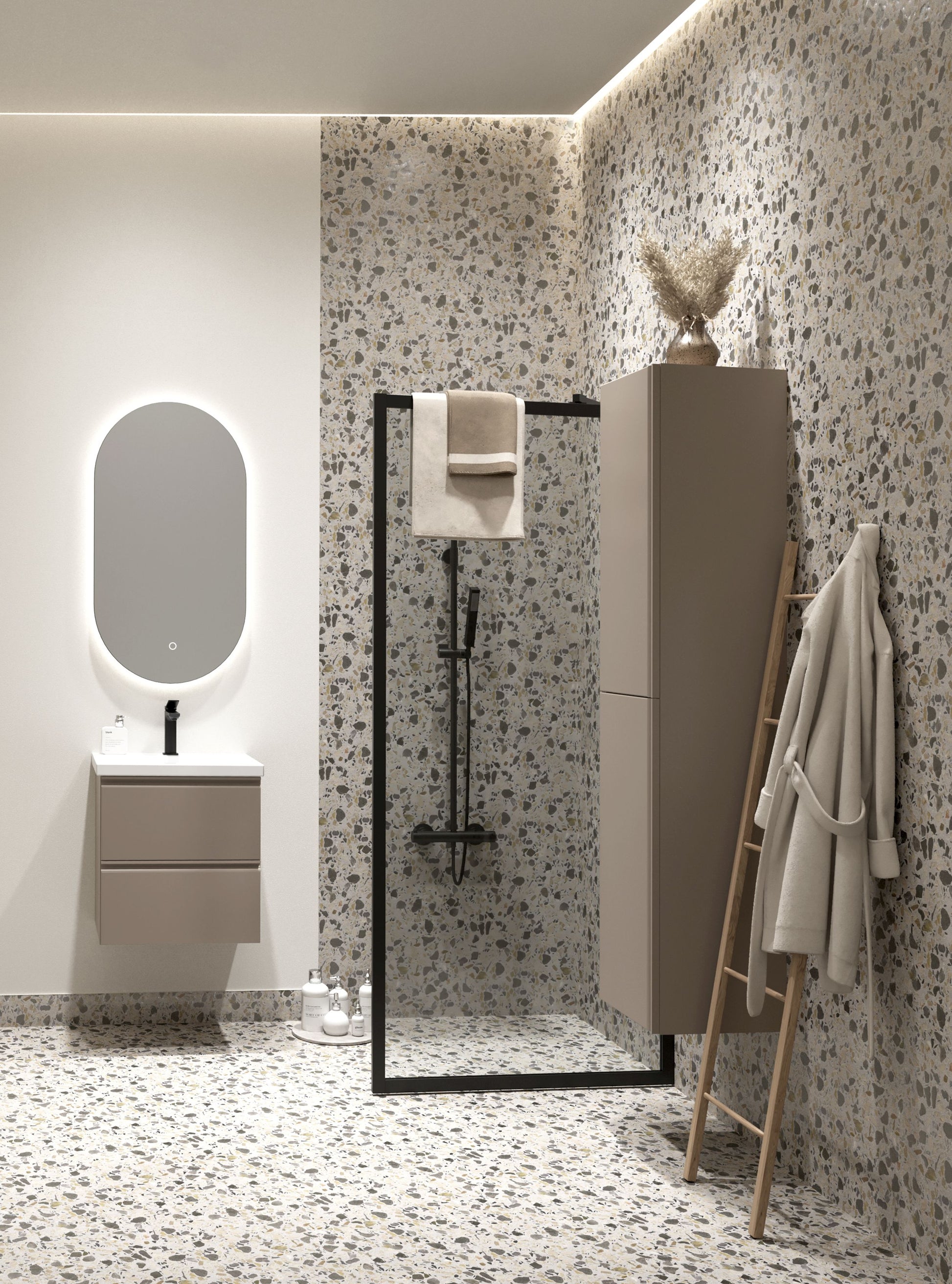 Speilets bakbelyste LED-lys gir en myk, stemningsfull glød som er både dekorativ og praktisk. Med touch-sensor kan du enkelt justere både lysstyrke og fargetemperatur – perfekt for å skape lun og romantisk belysning til kveldens SPA-ritualer, eller klart og energigivende lys for morgenrutiner. Speilet har IP44-klassifisering og er trygt å bruke på badet.
