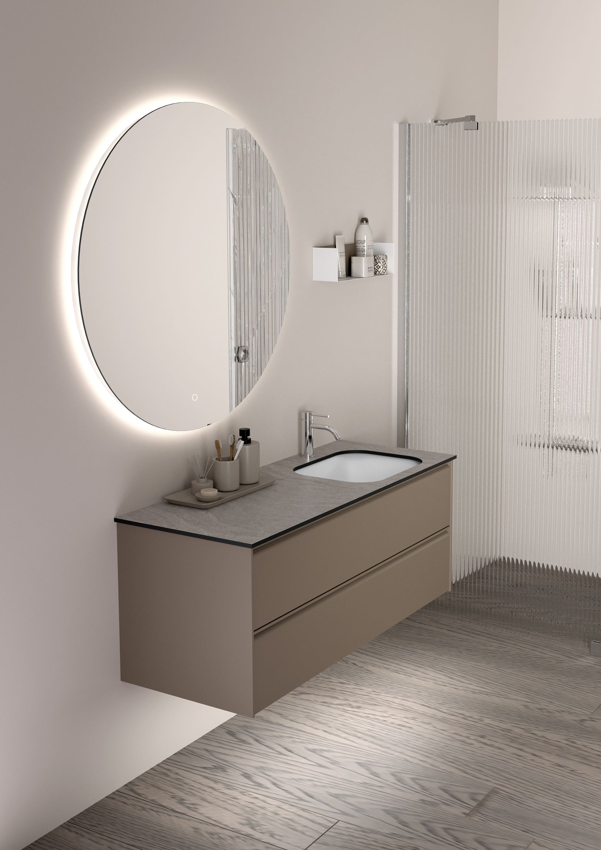 ROUND-speil har integrerte LED-bakbelysningen gir en behagelig, stemningsfull glød som både er dekorativ og funksjonell på badet. Med touch-sensor kan du enkelt justere lysstyrke og fargetemperatur – perfekt for å skape koselig og romantisk belysning til kveldsritualer, eller klart og effektivt lys til morgenens hygiene. Speilet har IP44-klassifisering og er trygt å bruke i våtrom.